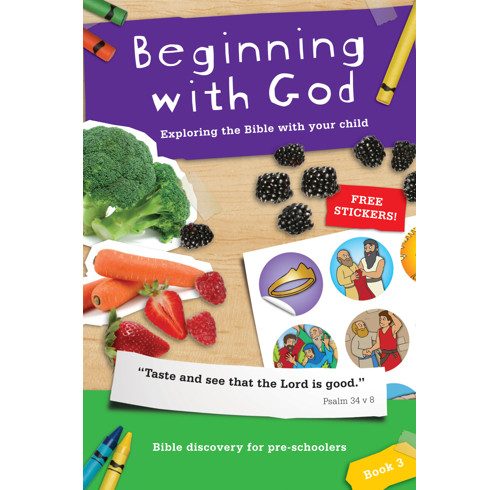 'Beginning with God: Book 3' is excellent! We have been using it with our 3 year old and he thoroughly enjoys it. He loves to do the introductory task, answer the questions on the passage, put his hands up in the air with excitement about what we've learned about God (and say 'wow' very loudly!) and of course, put the sticker up on the wall to map out our Bible overview. Thank you GBC!