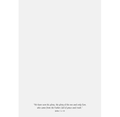 Text inside reads: "We have seen his glory, the glory of the one and only Son, who came from the Father, full of grace and truth. John 1 v 14."